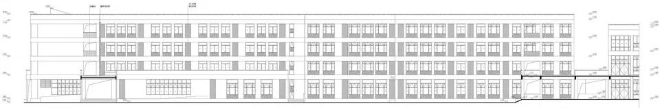 此外,場地緊鄰長江第四大橋,根據環境評估報告中關于隔離噪音的要求,教學用房必須退讓長江第四大橋超過200米的距離。這條退讓線將用地分割成了東西兩部分,西側根據規定不能設置班級教室,這使新校區的總平面布置與功能布局受到了限制。