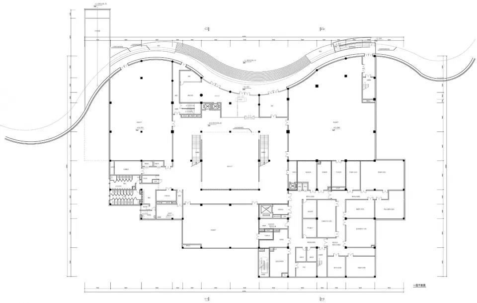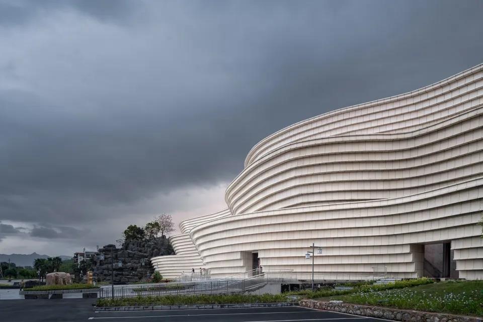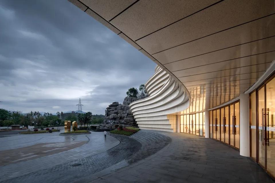 ▼展示中心正立面外觀,結合實際的蜿蜒的基地山形,形成景觀山地建筑